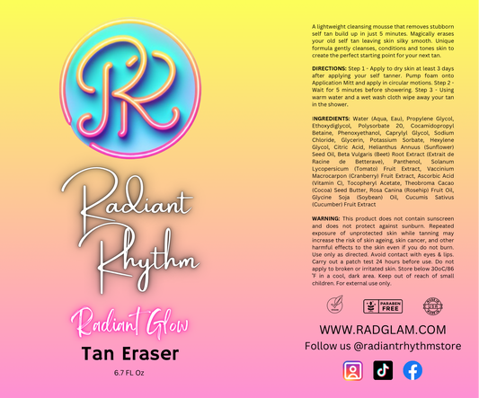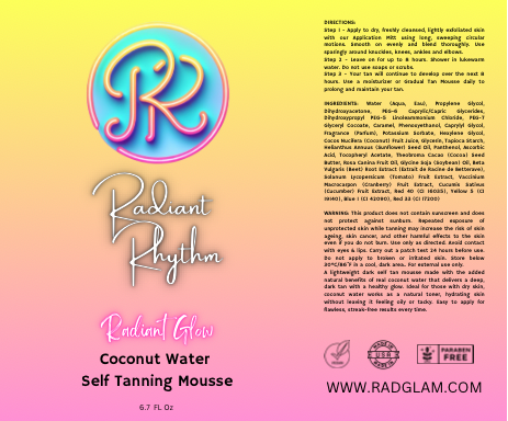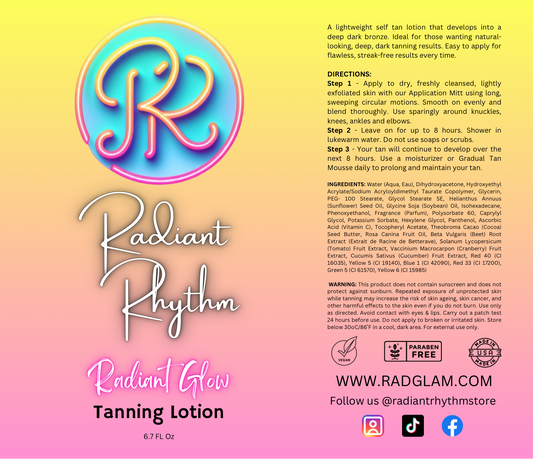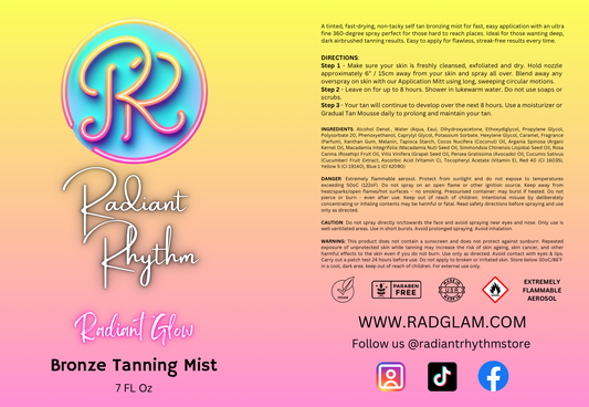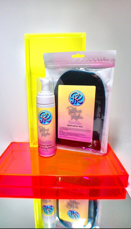 Radiant Rhythm is a luxurious tanning collection designed to enhance your natural glow and bring a touch of elegance to your tanning routine. Our collection features a range of high-quality tanning products, including bronzing lotions, mousses, and sprays, all formulated to give you a radiant and sun-kissed look. Infused with nourishing ingredients, Radiant Rhythm products will leave your skin feeling soft, hydrated, and beautifully bronzed. Whether you're looking to achieve a deep tan or just a hint of color, our collection has something for everyone. Elevate your tanning experience with Radiant Rhythm and embrace the beauty of sun-kissed skin.